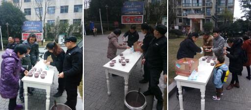 早出相送·禱祝豐收:自8:30開始200余份臘八粥被一一送到業(yè)主家人手中,現(xiàn)場氣氛熱烈,暖意濃濃,物業(yè)人員臉上洋溢著微笑,一句句暖心的問候,讓大家感受到滿滿的溫暖,傳遞出濃濃的情誼!