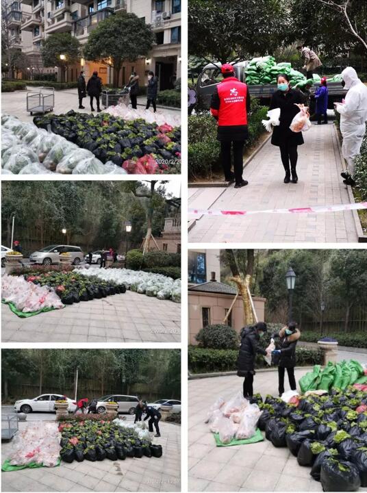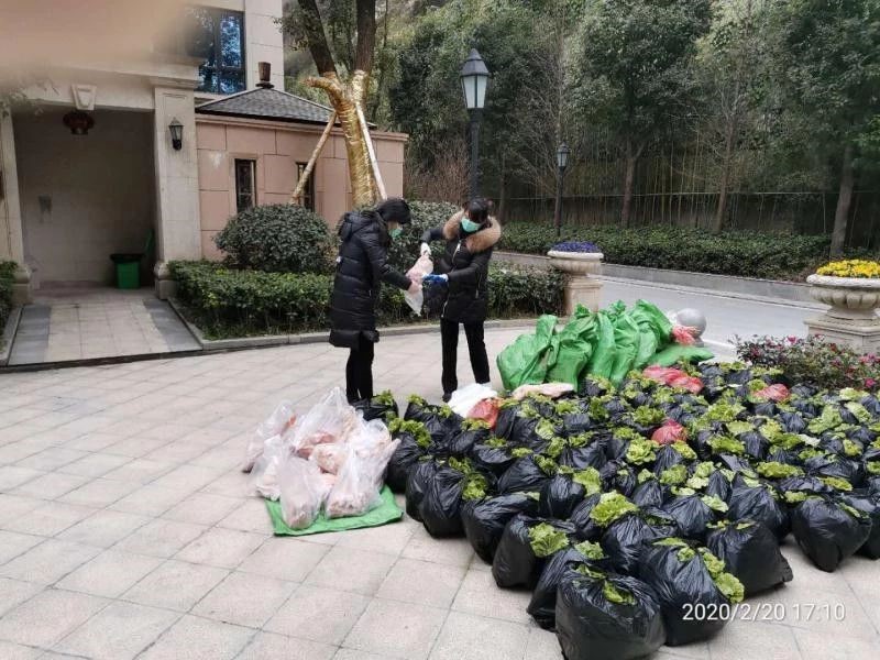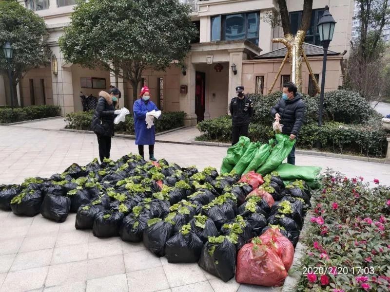 2月20日下午17:00,各類新鮮蔬菜、鮮活禽類的配送車開始到達(dá)各個(gè)小區(qū),全體工作人員開始分樓棟、分單元、分類進(jìn)行籌備。