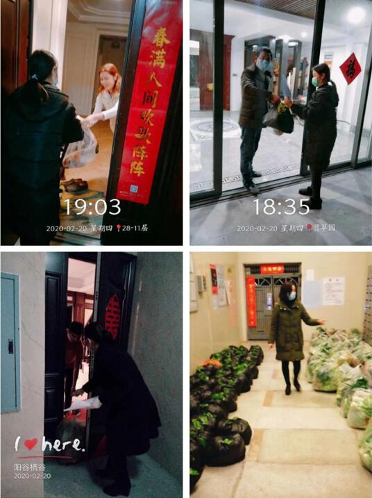 所有物資到戶后工作人員及志愿者會(huì)通過樓棟管家微信及敲門通知,業(yè)主收到微信通知并開門的情況下,由工作人員將蔬菜禮包轉(zhuǎn)交給業(yè)主,為避免交叉感染,要求所有工作人員務(wù)必做好全面防護(hù)措施,特殊時(shí)期,嚴(yán)禁和業(yè)主寒暄交談。