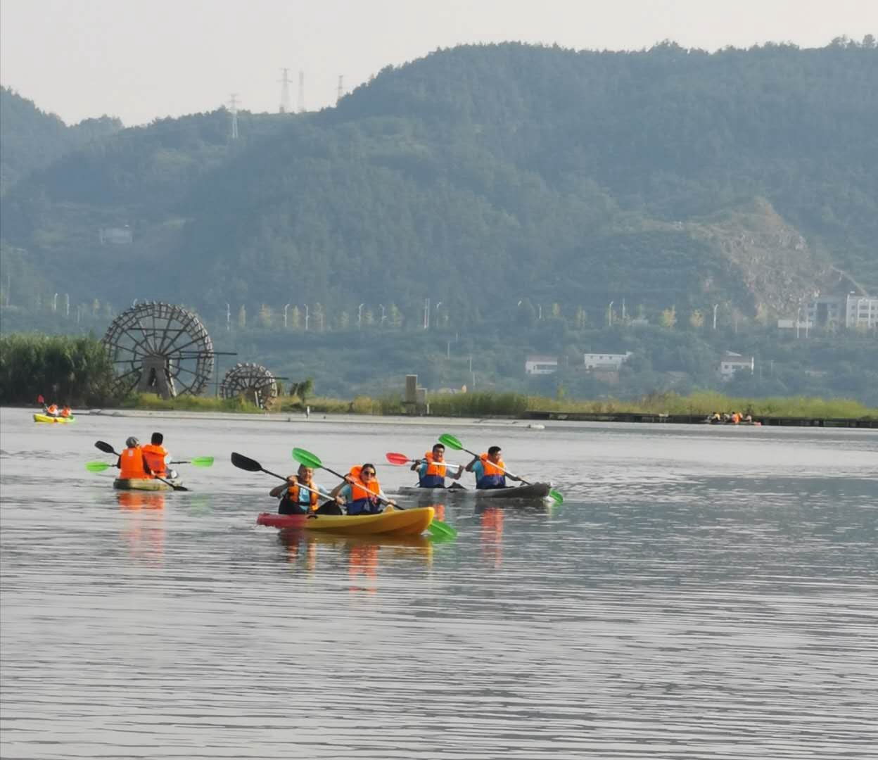 高效的團(tuán)隊訓(xùn)練后,是一天訓(xùn)練的壓軸活動-----皮劃艇。炎熱的天氣,讓大家迫不及待與清涼的湖水來一次親密接觸,兩人座的皮劃艇,需要相互默契配合,才能劃得更快更遠(yuǎn),乘風(fēng)破浪,大家在努力前行。