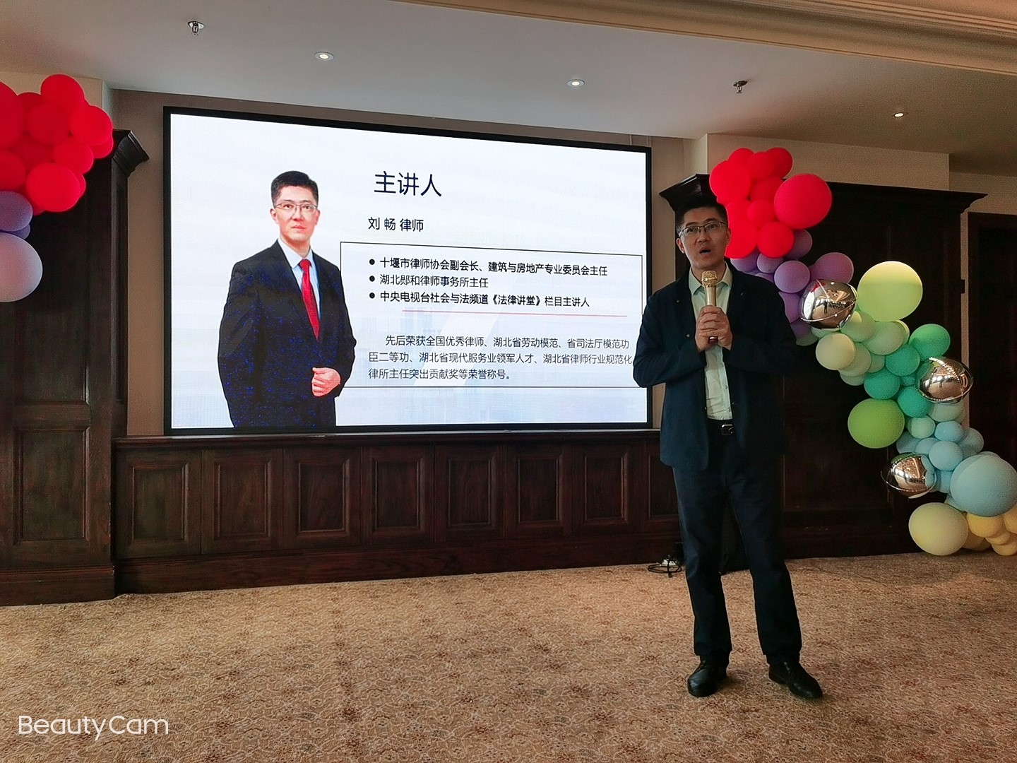 正式訓(xùn)練之前,公司還特別邀請了十堰市律師協(xié)會副會長、鄖和律師事務(wù)所主任、著名律師劉暢為大家做《民法典》的解讀,就《民法典》中與物業(yè)管理相關(guān)的內(nèi)容進(jìn)行了全面深刻的剖析,并結(jié)合一些實(shí)例進(jìn)行深入分析,理論和實(shí)際結(jié)合,內(nèi)容豐富詳實(shí),給大家上了一堂生動的法制教育和培訓(xùn)課。