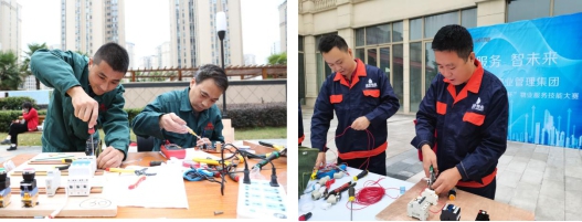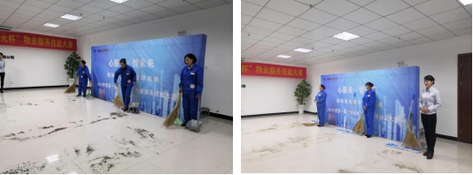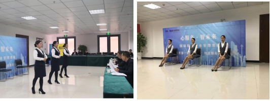 實(shí)操考核根據(jù)工種不同內(nèi)容也不相同,項(xiàng)目經(jīng)理進(jìn)行知識搶答、情景模擬及個人主題演講;客戶服務(wù)進(jìn)行禮儀展示、知識搶答及主題演講;工程服務(wù)進(jìn)行電路線連接及上門服務(wù)演練;秩序服務(wù)進(jìn)行4×100接力、三人五帶及隊(duì)列形象展示;保潔服務(wù)進(jìn)行禮儀及實(shí)操展示。
