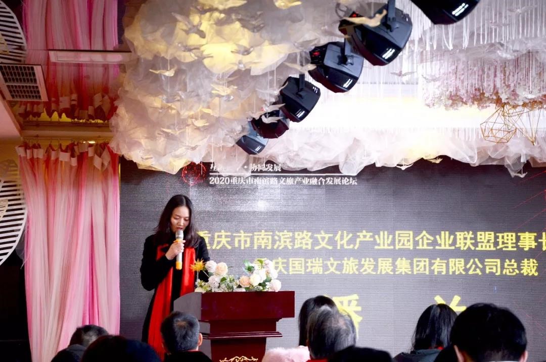 為更好的推進(jìn)重慶市南濱路“以文塑旅、以旅彰文”的文旅融合發(fā)展道路,1月13日,由重慶市南濱路管理委員會(huì)、重慶市南濱路文化產(chǎn)業(yè)園企業(yè)聯(lián)盟聯(lián)合主辦的“2020重慶市南濱路文旅產(chǎn)業(yè)融合發(fā)展論壇”在南濱路盛大開幕。我司作為企業(yè)聯(lián)盟理事長單位,也特別派出潘富蘭、馬躍峰同志作為重慶國瑞文化發(fā)展集團(tuán)有限公司的代表出席了本次活動(dòng)。