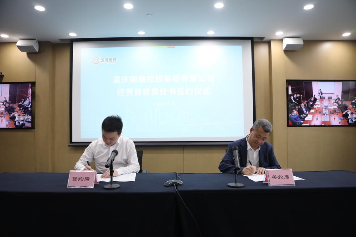 2020年5月9日下午2點(diǎn),在重慶國瑞中心23樓會議室和十堰陽光棲谷20樓會議室,以視頻的形式同時(shí)召開會議,舉行2020年重慶國瑞控股集團(tuán)經(jīng)營目標(biāo)責(zé)任書簽約儀式。會議由控股集團(tuán)副總裁肖磊主持,控股集團(tuán)董事長肖基成出席會議,重慶及十堰片區(qū)經(jīng)理級以上的管理人員參加會議。