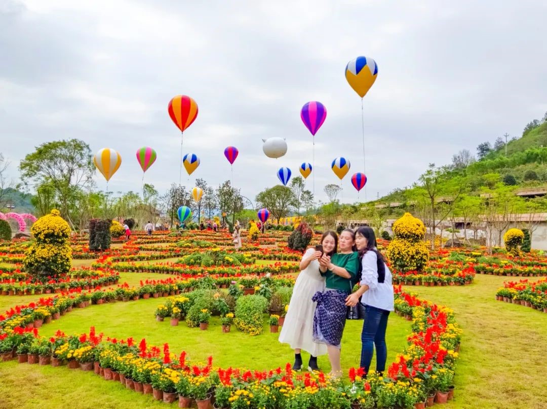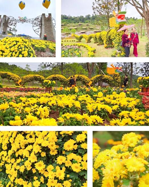 景區(qū)里還設(shè)置了十二生肖菊花迷宮,配上絢麗多姿的空飄,實(shí)在是太美啦!園區(qū)內(nèi)有國(guó)慶菊、秋菊、品種菊、萬(wàn)壽菊、秋菊、孔雀菊等多種菊花,花黃如金,一朵朵、一簇簇開得如微笑般燦爛。處處皆有游客用相機(jī)定格菊花盛放的姿態(tài)。