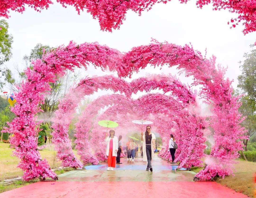 唯美的網(wǎng)紅打卡長(zhǎng)廊,配上夢(mèng)幻的煙霧,行走其間,猶如踏入仙境,穿一襲飄飄長(zhǎng)裙,撐一把油紙傘,便是人間最美的仙女。