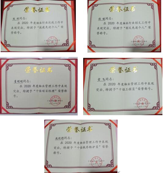 在此次表彰大會上,國瑞陽光物業(yè)管理集團(tuán)十堰有限公司榮獲“抗擊新冠疫情先進(jìn)單位”、“爭創(chuàng)全國文明城市先進(jìn)單位”,陽光棲谷榮獲“紅色物業(yè)示范項(xiàng)目”,熊瑞同志榮獲“抗疫先進(jìn)個人”、張健同志榮獲“創(chuàng)文先進(jìn)個人”,董明明同志榮獲“十佳項(xiàng)目經(jīng)理”,雷飛同志榮獲“十佳工程員”,敖利彤同志榮獲“十佳秩序維護(hù)員”榮譽(yù)稱號。