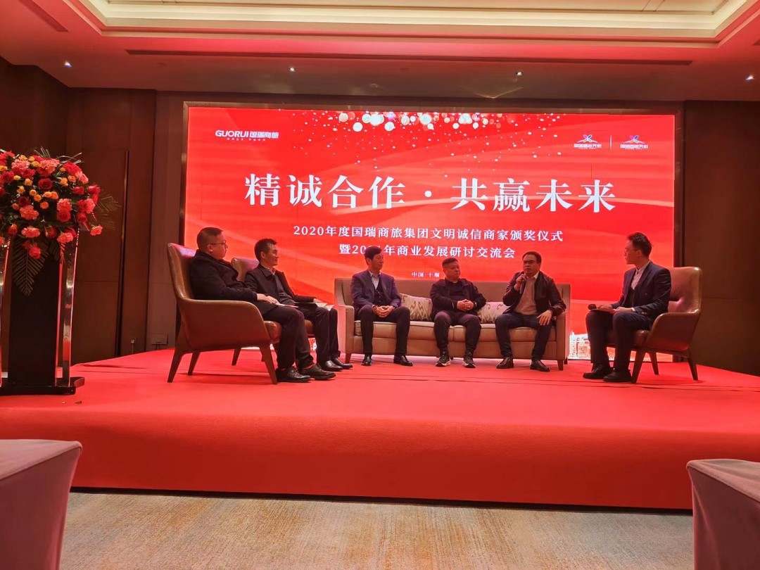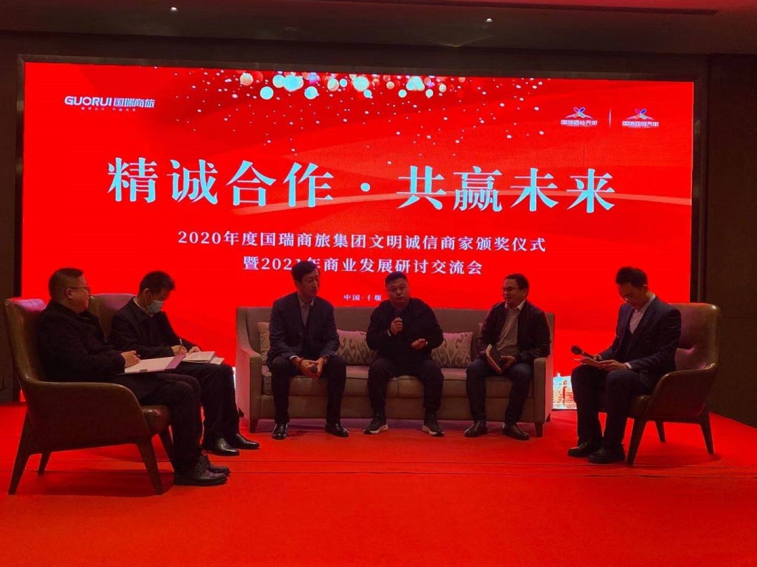 3月11日下午,國瑞商旅集團(tuán)2020年文明誠信商家頒獎(jiǎng)儀式暨2021年商業(yè)發(fā)展研討交流會(huì)隆重舉行。張灣區(qū)商務(wù)局、陽光社區(qū)的相關(guān)領(lǐng)導(dǎo)、商家代表、新聞媒體共聚十堰希爾頓逸林酒店,共同見證重慶國瑞商業(yè)管理集團(tuán)文明誠信商家頒獎(jiǎng)儀式,與國瑞商旅集團(tuán)一同回顧2020年難忘歷程,共話疫情后商業(yè)新趨勢、新變革。