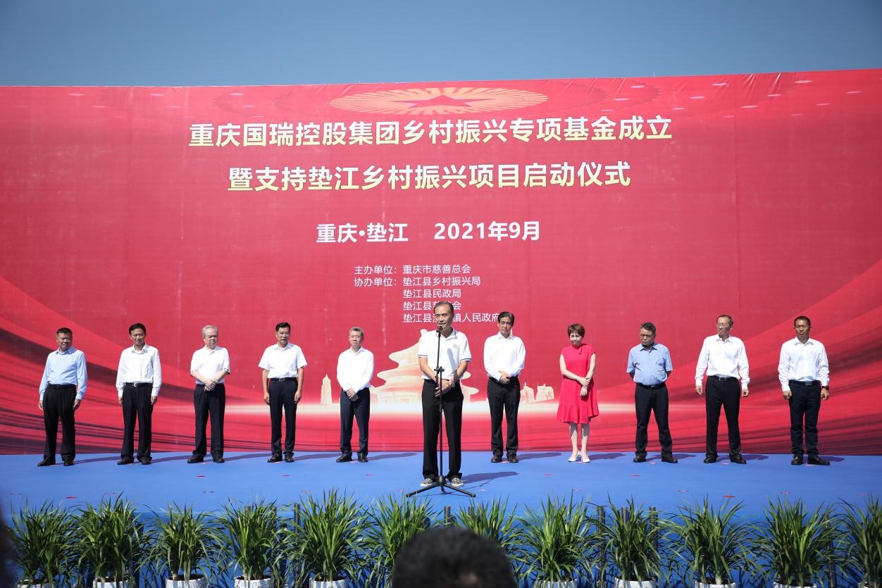 9月30日,重慶國(guó)瑞控股集團(tuán)鄉(xiāng)村振興專(zhuān)項(xiàng)基金成立暨支持墊江縣鄉(xiāng)村振興項(xiàng)目啟動(dòng)活動(dòng)在墊江舉行。重慶市慈善總會(huì)會(huì)長(zhǎng)劉光磊,墊江縣委書(shū)記毛平,國(guó)瑞控股集團(tuán)董事長(zhǎng)肖基成,重慶市民政局副局長(zhǎng)鄧琳,重慶市鄉(xiāng)村振興局督查專(zhuān)員羅代福,重慶市慈善總會(huì)常務(wù)副會(huì)長(zhǎng)陳煥奎,南岸區(qū)委常委、統(tǒng)戰(zhàn)部部長(zhǎng)梅澤波,國(guó)瑞控股集團(tuán)副總裁肖基鑾,墊江縣人大常委會(huì)主任易大斌,縣政協(xié)主席楊剛,縣委副書(shū)記粟登琳出席。墊江縣委副書(shū)記、縣政府縣長(zhǎng)人選張濤主持。