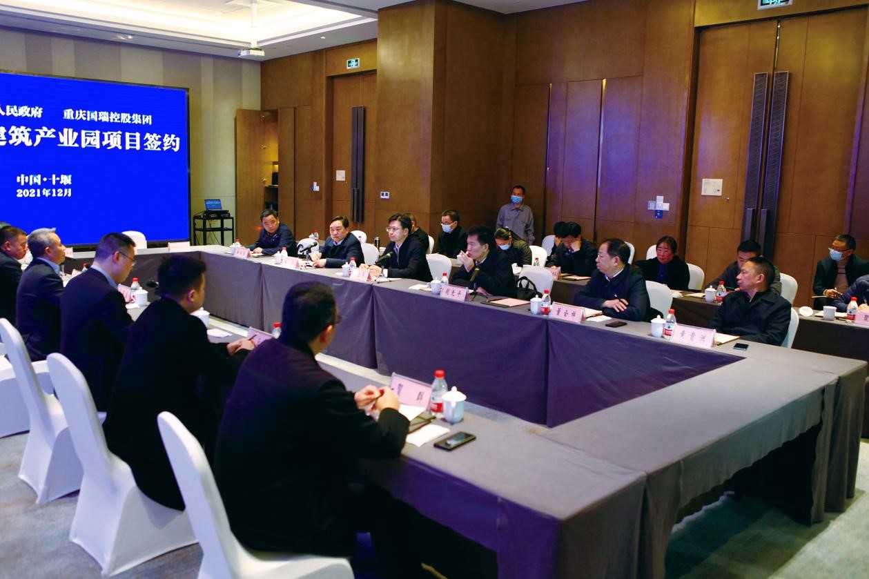 肖基成董事長(zhǎng)首先對(duì)各位領(lǐng)導(dǎo)長(zhǎng)期關(guān)心支持民營(yíng)企業(yè)發(fā)展表示了感謝,同時(shí)也表達(dá)了扎根十堰三十年,見證了十堰發(fā)展,希望繼續(xù)為城市社會(huì)經(jīng)濟(jì)發(fā)展貢獻(xiàn)力量的心情。最后圍繞產(chǎn)業(yè)與空間規(guī)劃、現(xiàn)代建筑與裝配式產(chǎn)業(yè)發(fā)展等領(lǐng)域展開合作表達(dá)了信心與決心。他表示:國(guó)瑞控股集團(tuán)積極響應(yīng)政府“推動(dòng)裝配式建筑,發(fā)展綠色建筑新材料”的總體要求,大力推進(jìn)發(fā)展裝配式建筑,積極探索建筑工業(yè)化發(fā)展模式;充分發(fā)揮開發(fā)、設(shè)計(jì)、生產(chǎn)、施工、運(yùn)維一體化的綜合優(yōu)勢(shì),以EPC總承包模式為抓手,不斷推進(jìn)裝配式綠色建筑產(chǎn)業(yè)發(fā)展,形成了標(biāo)準(zhǔn)化設(shè)計(jì)、工廠化生產(chǎn)、裝配化施工、一體化裝飾、信息化管理的全產(chǎn)業(yè)融合的發(fā)展模式;堅(jiān)定不移地踐行“綠色建筑”和裝配式建筑科技創(chuàng)新發(fā)展道路,為引領(lǐng)十堰綠色建筑發(fā)展貢獻(xiàn)力量。