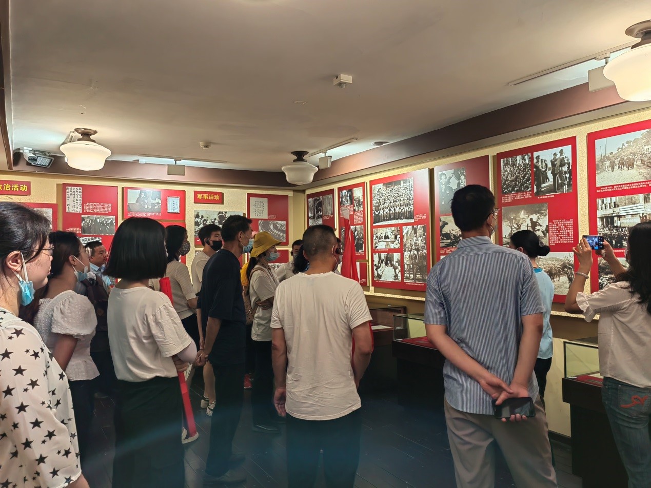 英雄故事頌不盡,偉大軍魂鑄心間。在園區(qū)的革命歷史陳列館里,留存著多件戰(zhàn)爭時的槍、炮彈、鋼盔等物品,講解員通過一幅幅歷史照片,一張中原突圍部隊在鄂豫陜及南化塘的作戰(zhàn)圖片,生動講述了中國共產(chǎn)黨帶領(lǐng)人民浴血奮戰(zhàn)的壯烈場景,讓大家切身感受革命先輩艱苦奮斗、櫛風(fēng)沐雨的革命初心,給大家上了一堂深刻的黨史教育課。