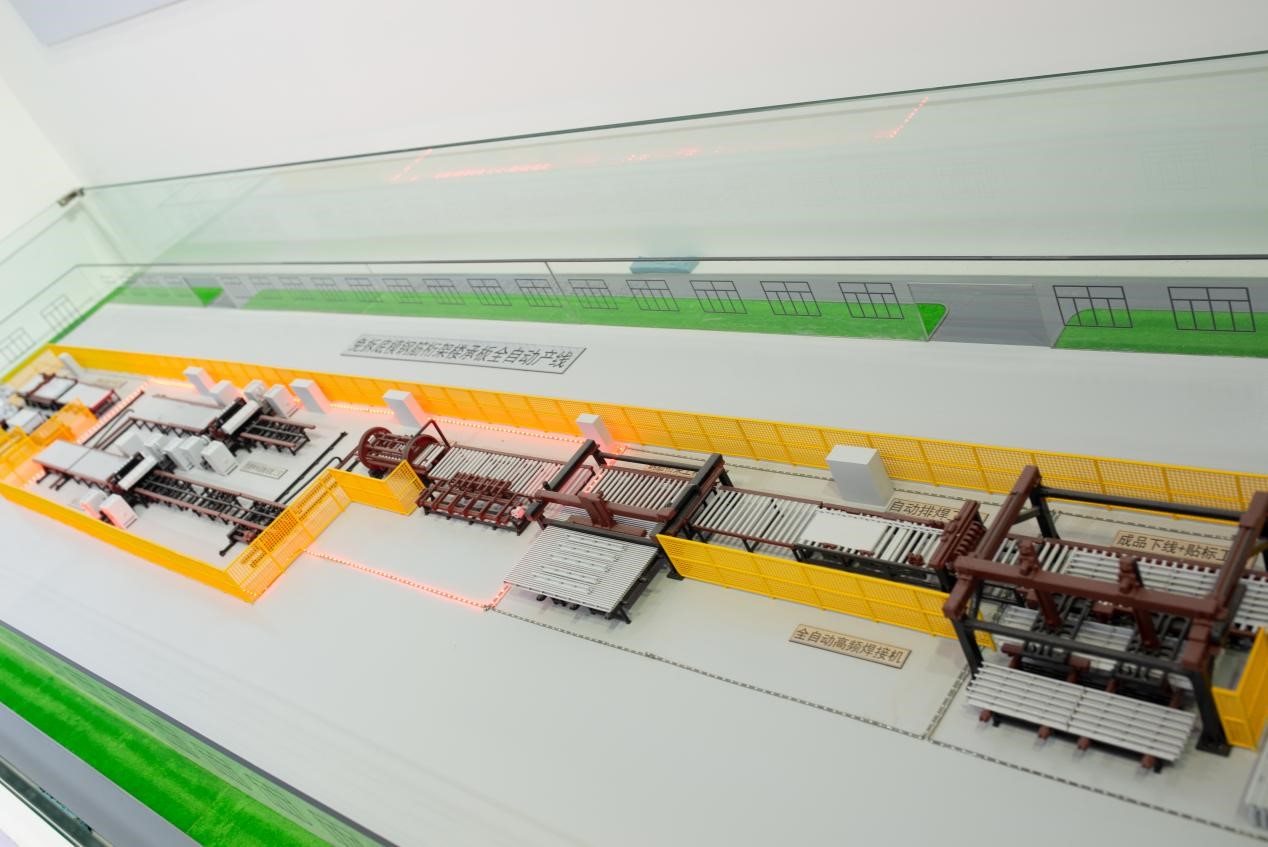 此次亮相住博會(huì),國(guó)瑞控股集團(tuán)展廳分為模型展示區(qū)、產(chǎn)品展示區(qū)、VR互動(dòng)體驗(yàn)區(qū)、工藝展示區(qū),其中模型展示區(qū)通過模擬YJ板生產(chǎn)線,展示了國(guó)瑞控股集團(tuán)旗下渝建建筑工業(yè)科技集團(tuán)自主研發(fā)的免拆底模鋼筋桁架樓承板(簡(jiǎn)稱YJ板)的全自動(dòng)生產(chǎn)過程。