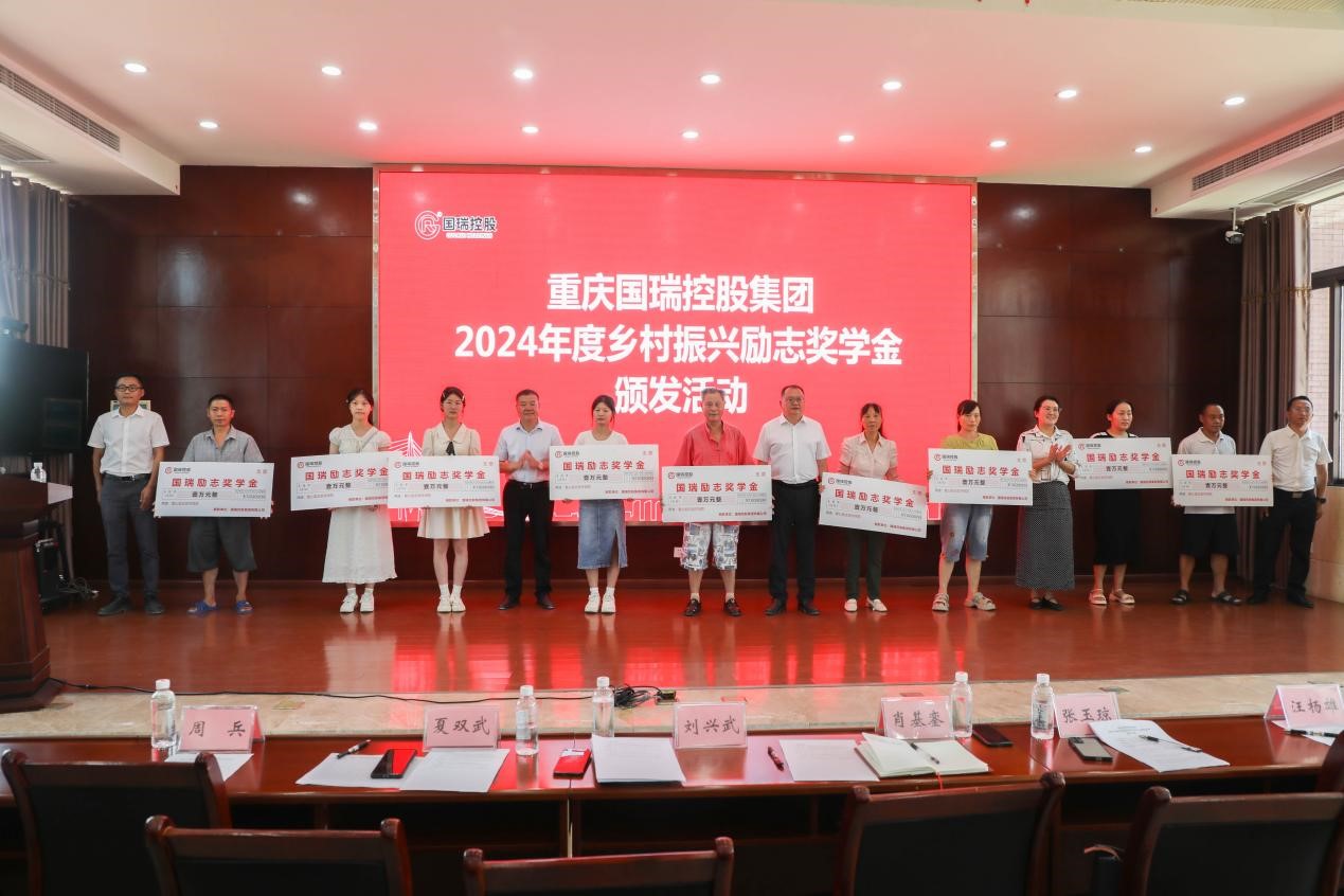 近日,重慶國(guó)瑞控股集團(tuán)在墊江縣澄溪鎮(zhèn)政府四樓會(huì)議室、國(guó)瑞綠色建筑產(chǎn)業(yè)園科創(chuàng)中心二樓會(huì)議室分別舉行了2024年度“國(guó)瑞勵(lì)志獎(jiǎng)學(xué)金”和“國(guó)瑞育才助學(xué)金”發(fā)放儀式。墊江縣委教育工委委員、縣教育委員會(huì)副主任張玉瓊,澄溪鎮(zhèn)黨委副書(shū)記、鎮(zhèn)政府鎮(zhèn)長(zhǎng)劉興武,澄溪鎮(zhèn)黨委副書(shū)記周兵,國(guó)瑞控股集團(tuán)黨委副書(shū)記、副總裁肖基鑾,渝建建筑工業(yè)科技集團(tuán)副總裁夏雙武等出席活動(dòng)。墊江縣澄溪鎮(zhèn)相關(guān)科室、鎮(zhèn)轄區(qū)中小學(xué)校、渝建礦業(yè)公司、南華社區(qū)負(fù)責(zé)人、學(xué)生以及家長(zhǎng)代表參加活動(dòng)。