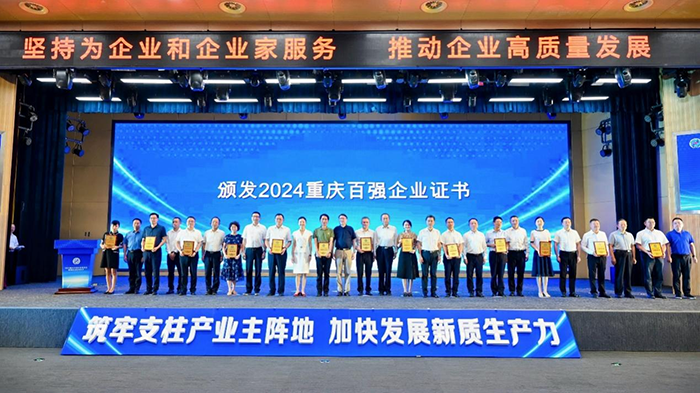 2024年9月25日,重慶市企業(yè)聯(lián)合會(huì)(企業(yè)家協(xié)會(huì))、重慶市工業(yè)經(jīng)濟(jì)聯(lián)合會(huì)召開2024重慶百強(qiáng)企業(yè)發(fā)布會(huì),揭曉了2024重慶企業(yè)100強(qiáng)榜單。...
